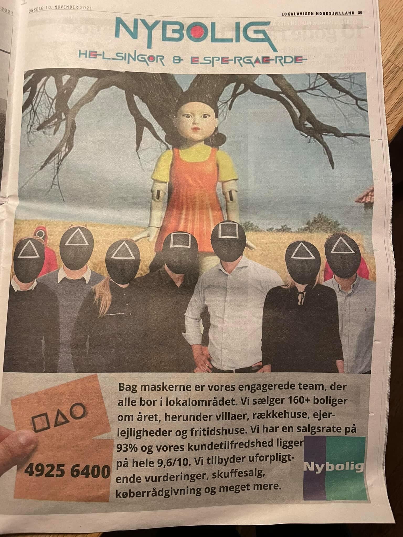 Årets anden WTF går til Nybolig i Helsingør. Vi kan kun gisne om, hvordan den brainstorm har set ud. Hvis den var kommet i december, havde vi tippet på en julefrokost, for det er så mærkeligt og uforståeligt, at vi blot kan sige: WTF… Døm selv på billedet. Og hvis du liiige skulle være i tvivl om kontekst, iler vi til med en lille YouTube video af, hvor inspirationen kommer fra (den er ikke for børn). Skal du handle med Nybolig i Helsingør, så er det på eget ansvar…
