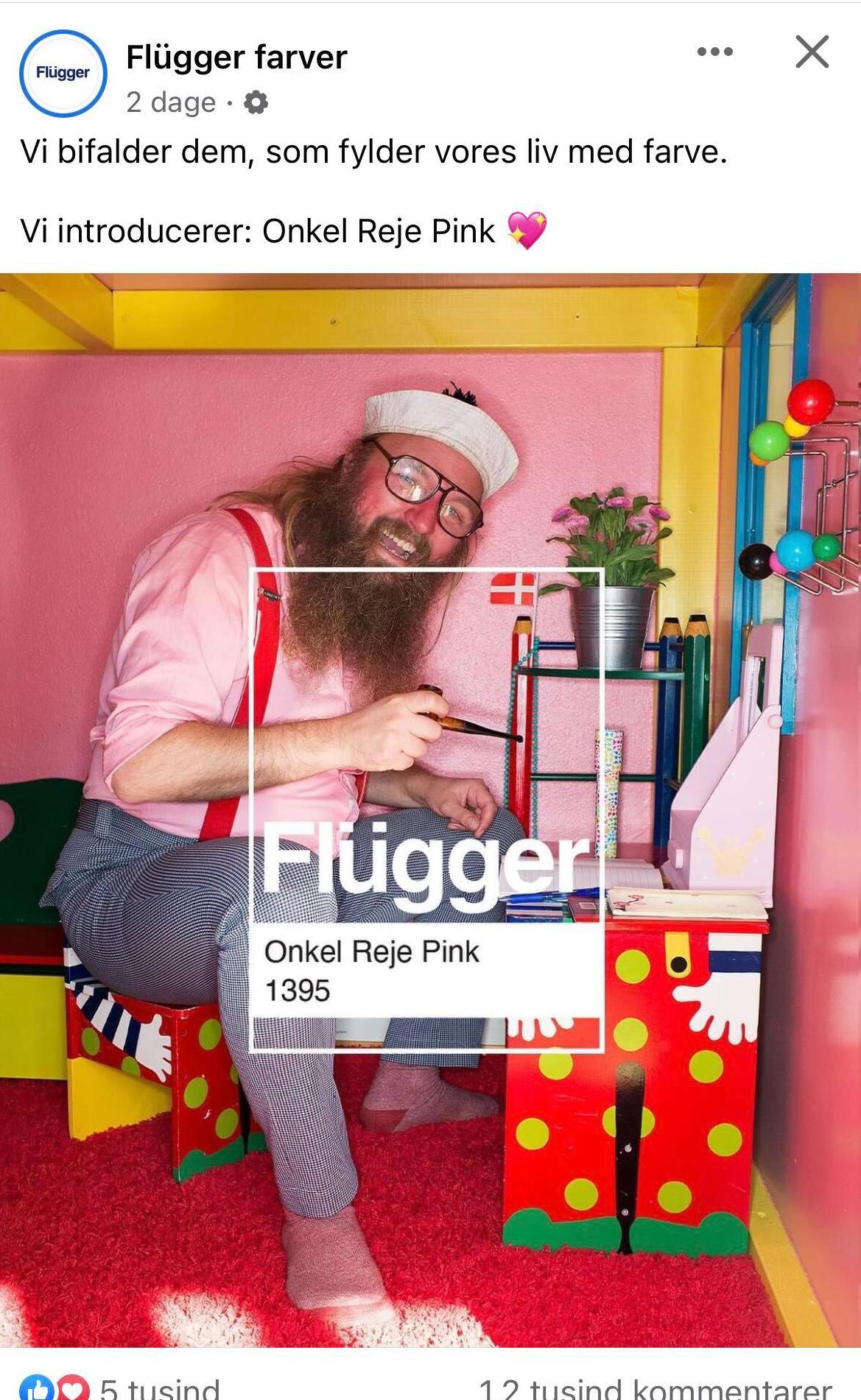 Onkel Reje røg pludselig i modvind blandt en gruppe sølvpapirshatte, der desværre råbte så højt på sociale medier, at den stakkels reje måtte sygemelde sig. Efter det kom frem, væltede de sociale medier sig efterfølgende i sympatitilkendegivelser. Herunder fik Flügger så den gode ide, at lave Onkel Reje Pink som hyldest. Vi er store fans af, at virksomheder ikke nøjes med at udtrykke deres holdninger i ord alene, men også viser handling. En ny farve til kortet er en smuk gestus. Vi håber, at rejen blev glad!