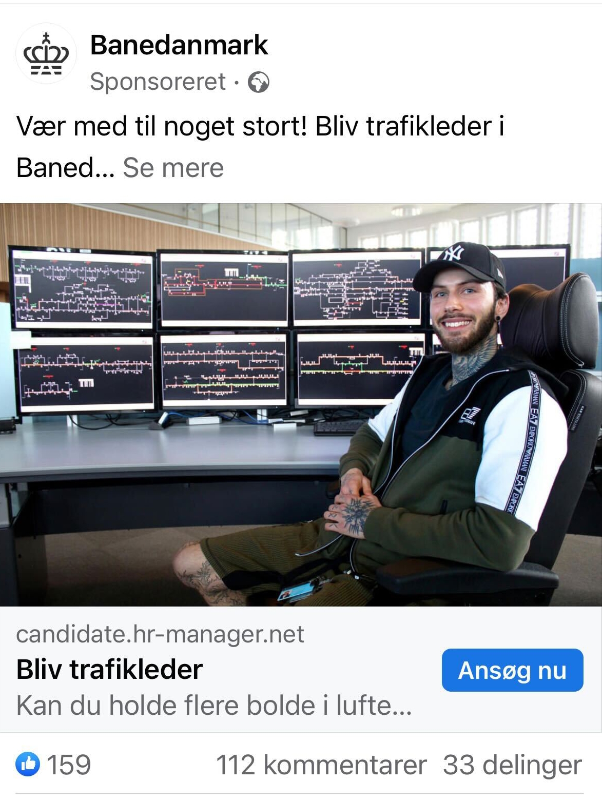 Rekruttering er altid en skæg disciplin - åbenbart også for BaneDanmark, der gerne vil tiltrække de unge. Og se, nu bliver det så rigtig svært at mene noget uden at støde nogen. Vi er selvfølgelig helt sikre på, at fyren på billedet er en rigtig flinker gut, der har styr på tingene. Så måske er det bare os, der ikke er målgruppen her. Meeeen, der er altså et eller andet ved de shorts, tusser og det kække kasket-grin, der ikke helt rimer på trafikleder og tog til tiden… eller hur?